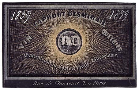 Vins robustes de coupage, mais aussi vins consommés en propre, en cuvée millésimée et avec étiquetage assez luxueux, comme le prouve cette étiquette de 1839. Selon Franck et Fauré, les vins des Queyries se prêtaient bien à la l’épreuve du « retour des Indes », consistant à faire voyager aux tropiques les vins dans les cales des voiliers, aller et retour, afin de les bonifier. « Alors que les voyages de long cours étaient moins rapides, les Queyries étaient très recherchés; on aurait eu crainte d’exposer longtemps aux ardeurs tropicales des vins plus légers ; on en faisait même revenir d’outre-mer pour leur donner par ce double voyage une haute valeur très-renommée. ».