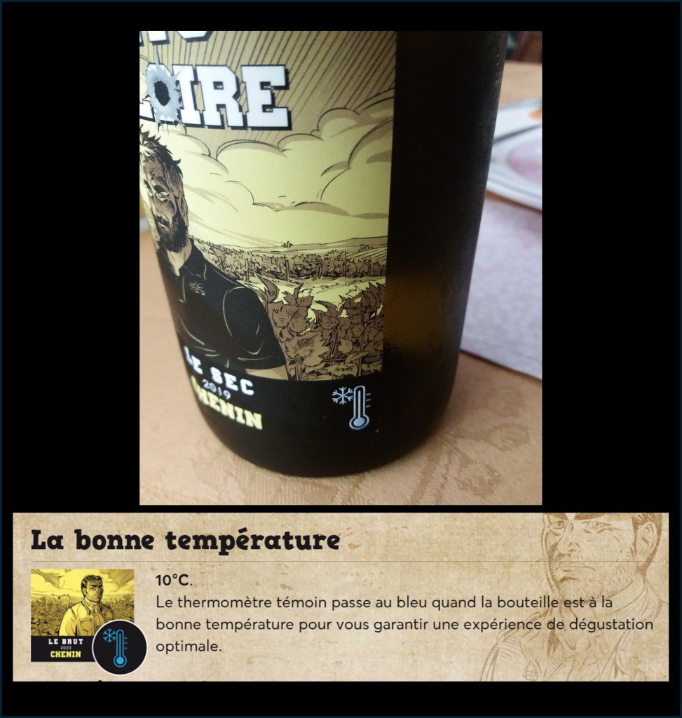 La marque de Champagne « Les Champagne EPC » (pour épicurien), adepte d’une traçabilité maximale, a adopté la petite pastille sur la contre-étiquette, qui devient bleu pastel lorsque la bouteille est à température idéale, entre 8 et 12°C.
