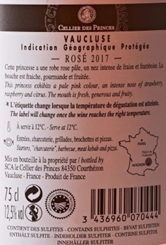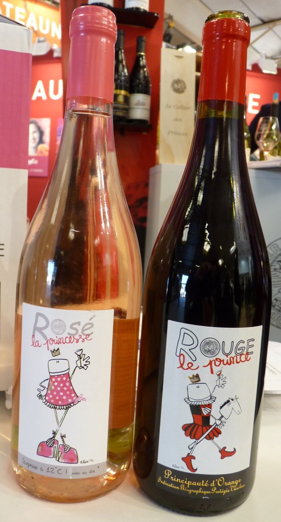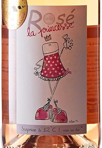 La princesse était un rosé dit « décalé » (?) d’IGP Vaucluse et le Prince un rouge léger d’IGP vin de la Principauté d’Orange. Seule la princesse a eu le droit à une étiquette thermochromique. Lorsque la bouteille était à la température conseillée de 12°C, des dessins et textes apparaissaient : selon le service marketing : « La Princesse sourit, les joues rosissent, le verre se remplit et « tchin-tchin » apparaît, traduit dans sept langues ». Mignon….