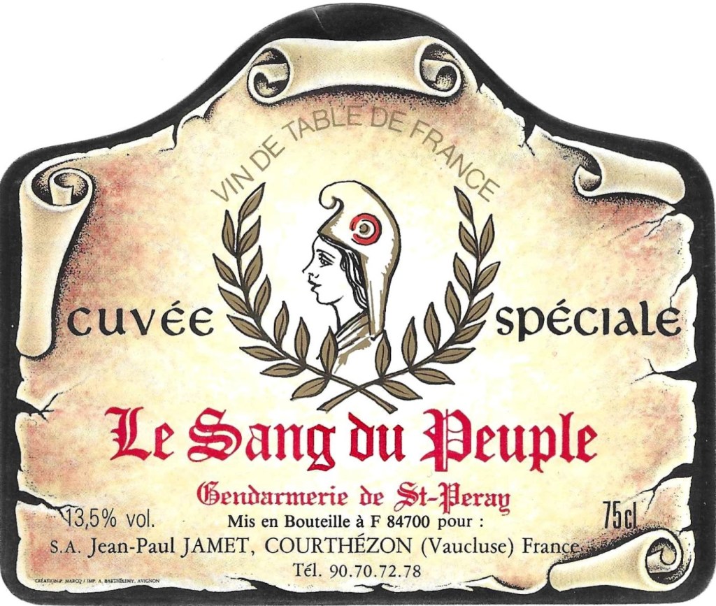 « Le Sang du Peuple » est également le nom de la cave Jamet, installée à Courthézon dans le Vaucluse depuis 1975, et d’une partie de ses cuvées rouges.