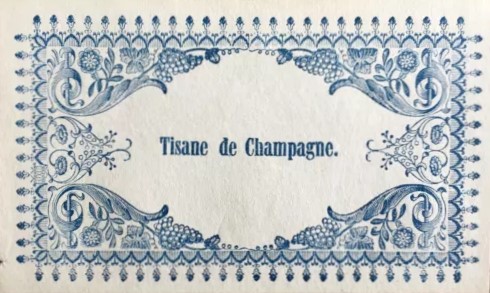 La plus ancienne étiquette de tisane de Champagne pourrait être celle de « Tysanne » de J. Moët et Cie, dont des fac-simile ont été réédités dans les années 1960 (illustration ci-dessus).  Jean-Rémy Moët (1758-1841), petit-fils du fondateur Claude, dirigeait alors la maison qui est devenue « J. Moët et Cie » en 1807.