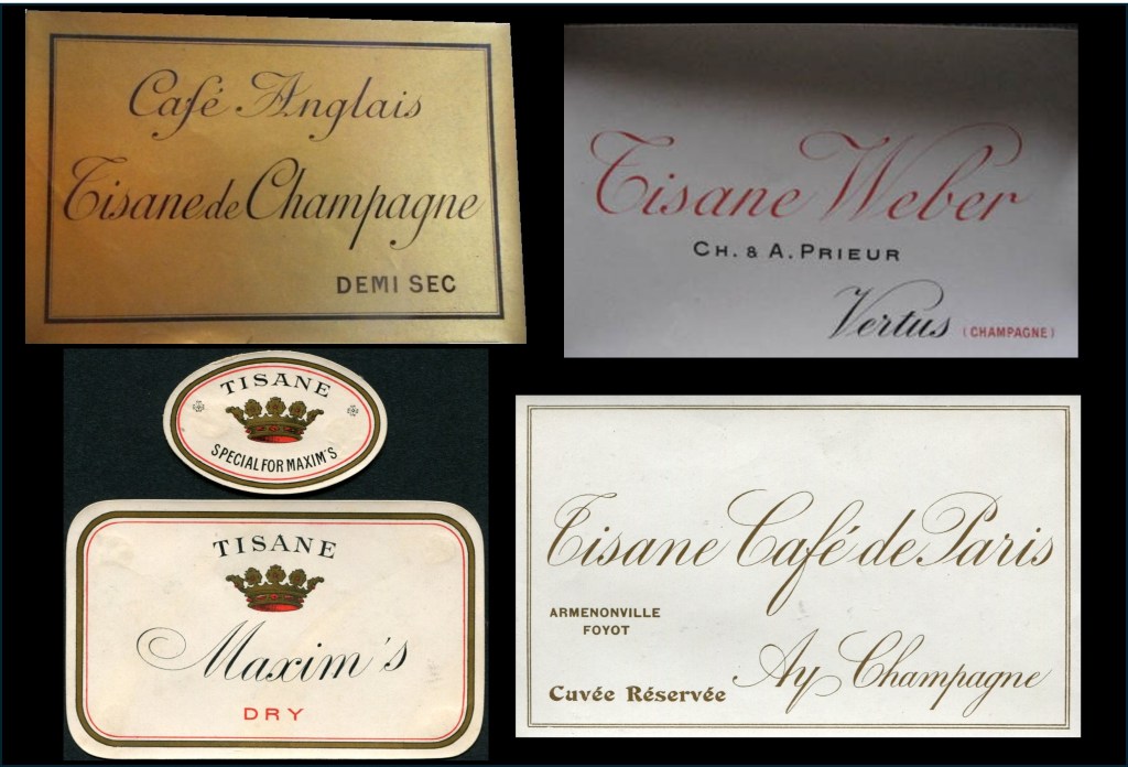 Cependant, les grands cafés et restaurants parisiens de l’époque que fréquentaient ces auteurs, le Café de Paris boulevard de l’Opéra, le Café Anglais boulevard des Italiens, le Weber et Maxim’s rue Royale, le Pavillon Royal au bois de Boulogne, avaient tous leur propre tisane de Champagne à la carte.