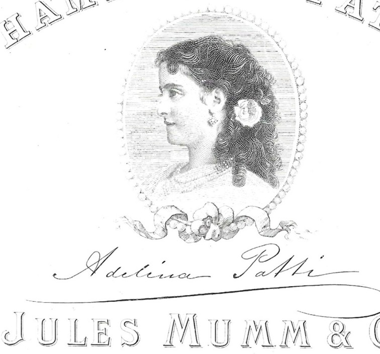 Entre les années 1870 et 1890, la maison de Champagne Jules Mumm alors en plein essor, a dédié une cuvée spéciale à la diva Adelina Patti.