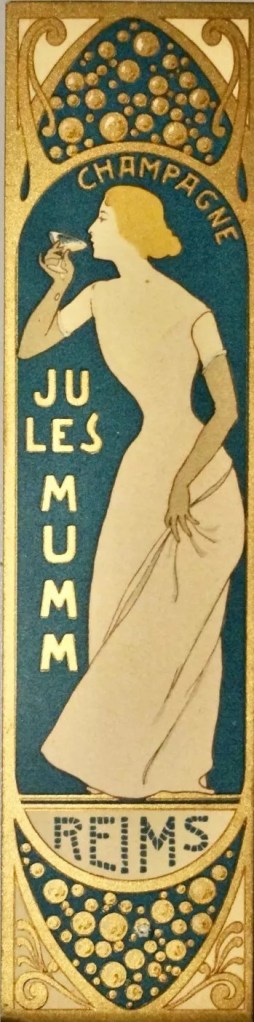 C’est Jules Mumm et C° et « les aînés et les plus anciens associés » qui conservent le siège social de la maison mère, comme l’explique ce document publicitaire du Champagne Jules Mumm, un marque page /tarif datant de 1893 et illustré par Maurice Réalier-Dumas.