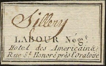 Si l’étiquette a déjà été publiée et commentée [2], personne à notre connaissance n’a publié de recherche sur ce Labour, négociant à l’hôtel des Américains, rue Saint-Honoré à Paris. L’hôtel des Américains, situé au numéro 400, puis 170, puis 147-147 bis de la rue Saint Honoré à Paris (correspondant approximativement au numéro 143 actuel, [3]), aurait pris ce nom en 1765 selon Charles Lefeuve et son Histoire de Paris, rue par rue, maison par maison [4] :