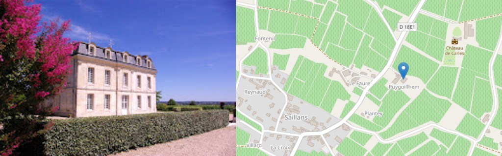 A Puy Guilhem, le joli château qui domine la propriété vinicole est de style Empire mais construit en 1868. Lui est constant sur les différentes étiquettes. Il est effectivement établi sur le point culminant  du plateau de Saillans, surplombant la vallée de l’Isle.